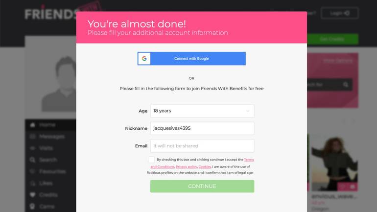 - Add your nickname, email, and age, and later share who you are after. Alternatively, you have the option to sign up with a Google account.