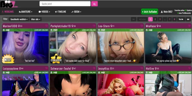Stop reading big7 reviews and start enjoying the best photos, videos, and online sessions with Big7 men, girls, and extreme duos. 1 euro per minute is not that much. So, youâre free to test the service. Youâll be surprised how fast you can finish your jerk-offs. Youâll wait for each live cam impatiently to meet your faves or go on experimenting with others. Donât be afraid to try something unusual like transsexuals cam shows or gay webcam shows because nobody will judge your sexual preferences here. Visit the site once, and youâll never be willing to stop.