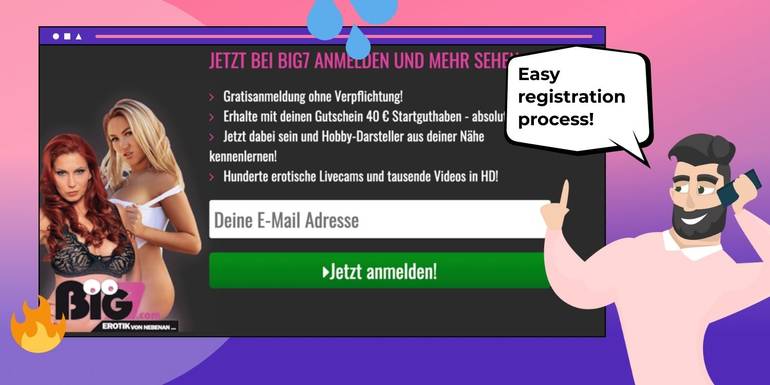 The registration is pretty simple, and you canât miss it because the green button is everywhere. I clicked and used my email address to become a member of big7 xxx. Another variant is to select one of the available social media Google Accounts or Facebook and sign up via them faster.