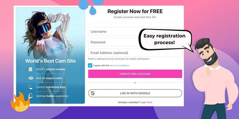 - CamSoda registration requires you to add a username, password, and email. Quite standard, you know? Or, you know, just go ahead and sign up with Google. No biggie.
