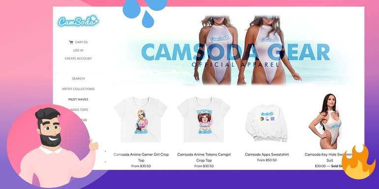 CamSoda is so trendy, theyâve got their own clothing line now! You can grab your masks, hats, hoodies, swimwear, and topsâbecause why not? What a fantastic way to support a site that can get you next-level horny!