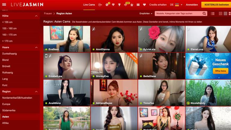 Diese HD-Cam-Shows sind vollgepackt mit Spielzeugen, die du mit Trinkgeldern steuern kannst, Cam-to-Cam-Möglichkeiten und vielem mehr. LiveJasmin veranstaltet sogar Wettbewerbe, damit die Asia Models noch mehr Inhalte für dich bereitstellen, und bietet dir regelmäßig Geschenke und Rabatte, die diese erstklassigen Shows noch erschwinglicher machen. Wenn du eine unvergessliche Wichs-Session mit atemberaubenden Asian Cam-Models erleben möchtest, probiere LiveJasmin aus.