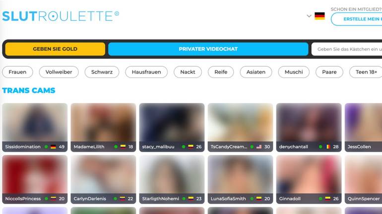 Und wir schließen unsere Liste der besten Trans-Cam-Seiten mit Slutroulette, einer vollwertigen Trans Live Cam Seite mit einer Vielzahl von Kategorien und jeder Menge Models – darunter auch Trans-Darsteller. Hier gibt es keine langweiligen Gespräche, sondern nur heißen Trans-Live-Sex! Melde dich einfach an und genieße geile Ärsche, die dich zum Abspritzen bringen. Es gibt auch eine mobile Version, mit der du deine versaute Trans-Zeit im Trans Sex Chat auch unterwegs genießen kannst.